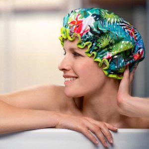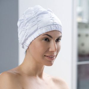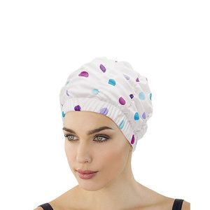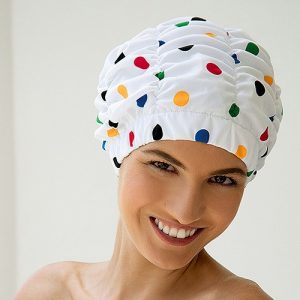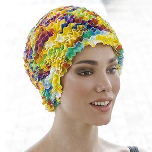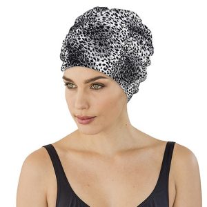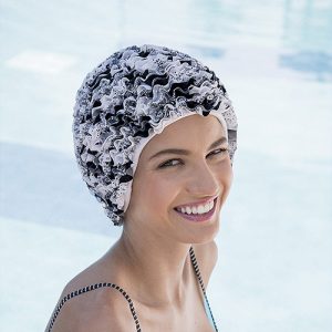 Bonnet de Bain Volants Tissu Noir et Blanc